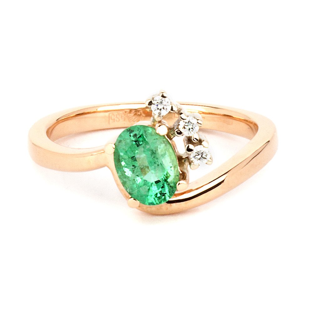 Кольцо из золота с овальным изумрудом и бриллиантами