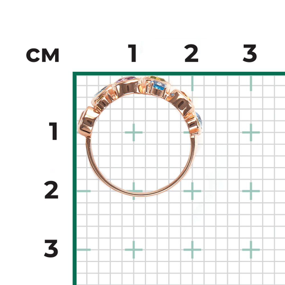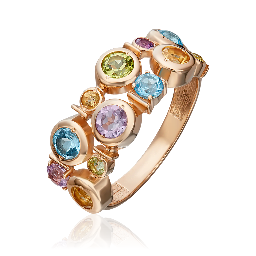 Кольцо, красное золото, аметист, топаз, хризолит, цитрин