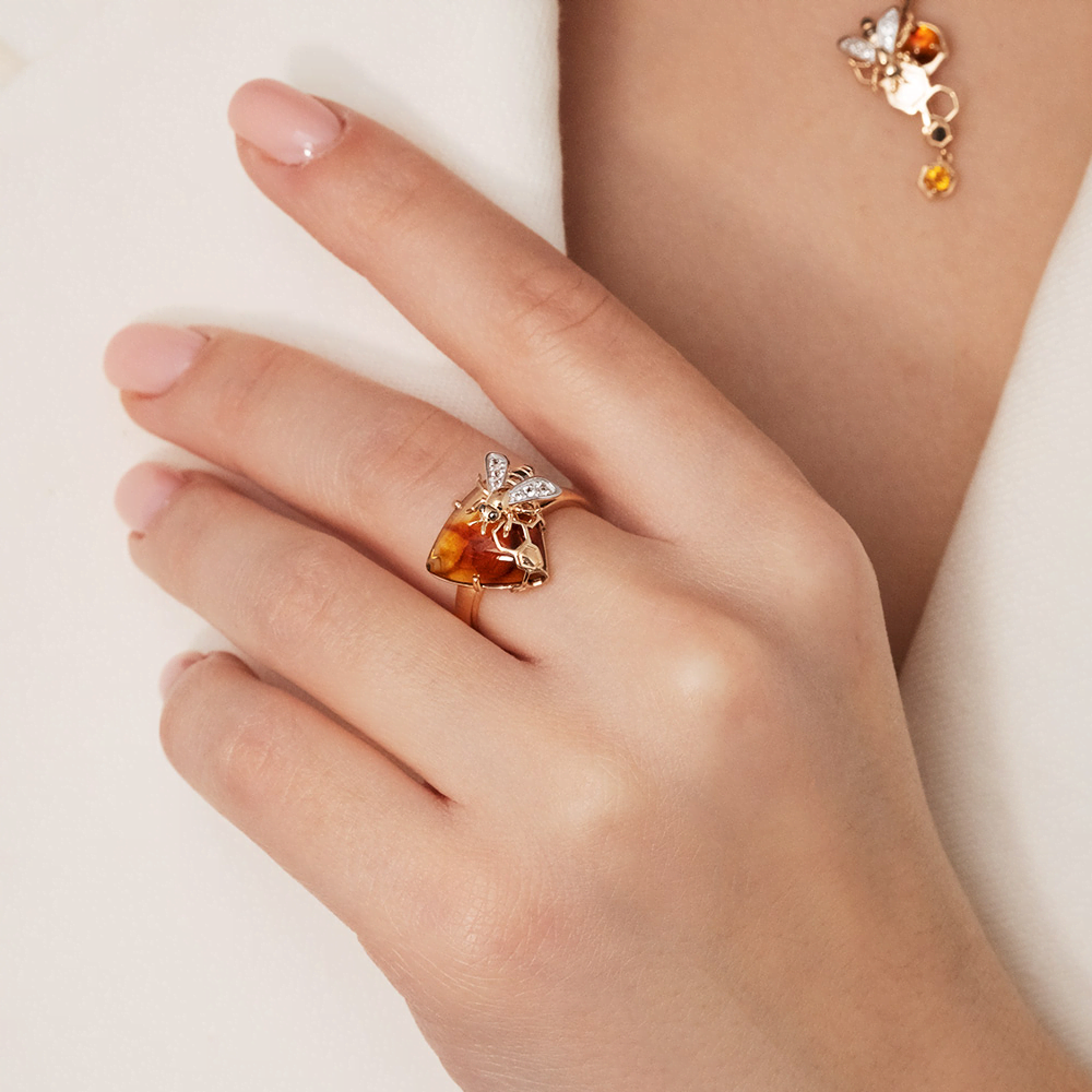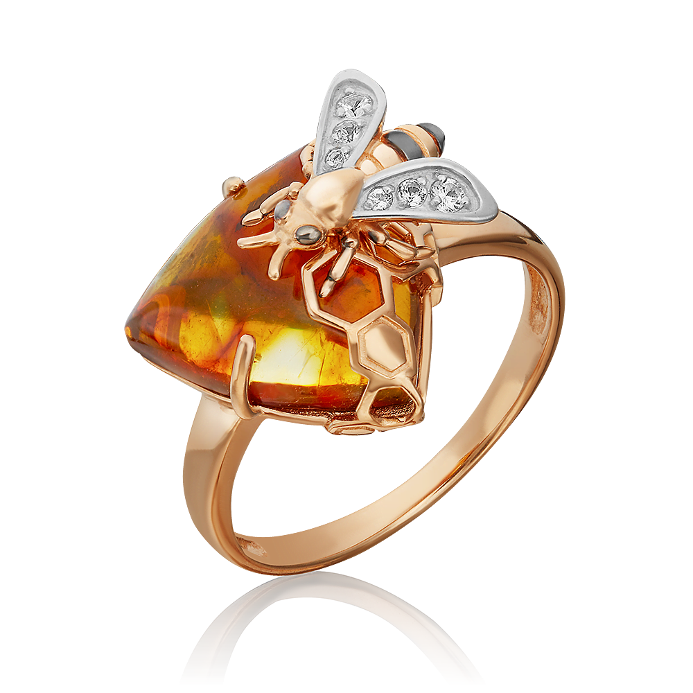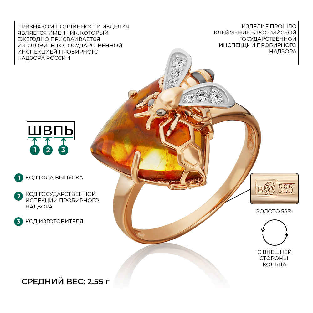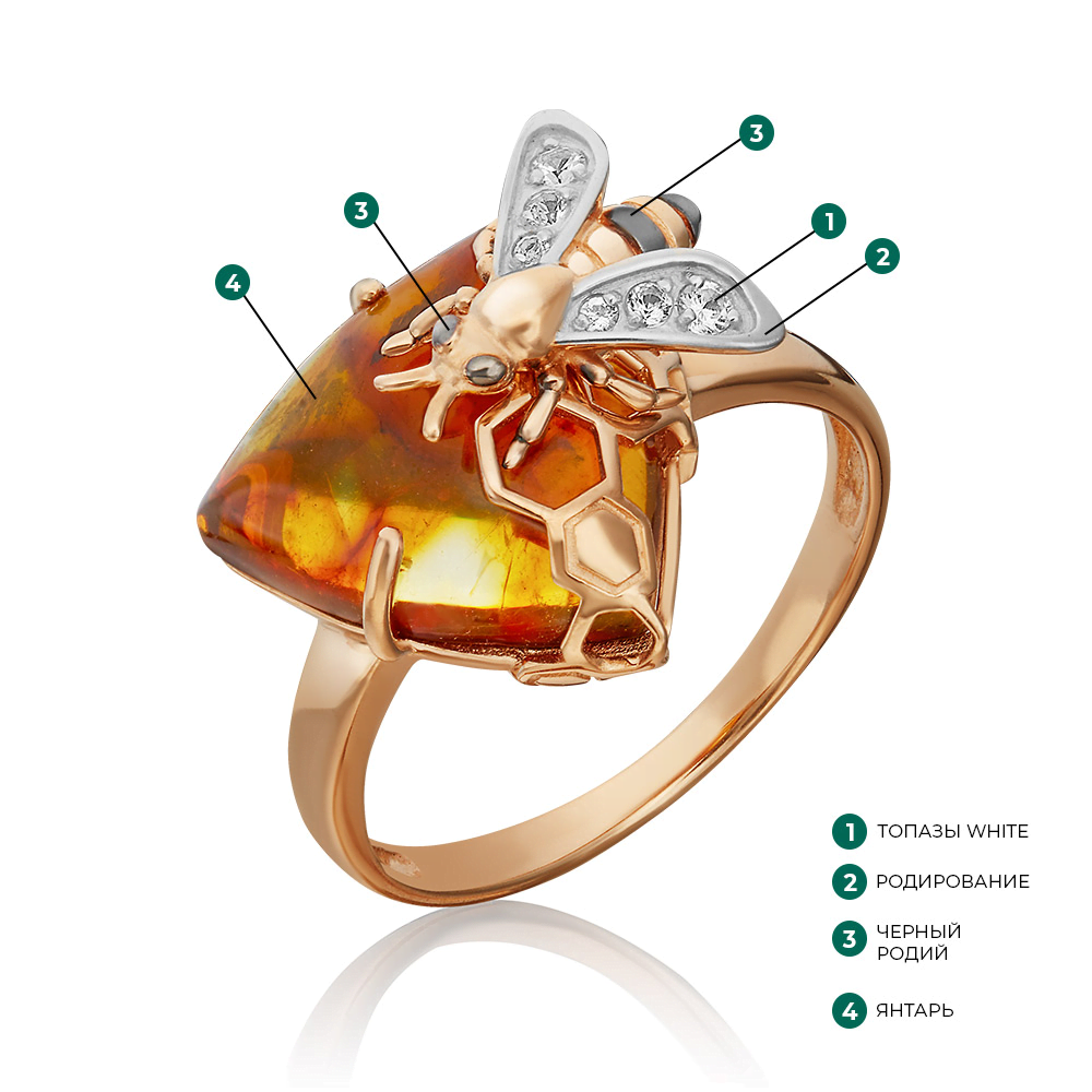 Кольцо из золота с каплевидным голубым топазом и фианитами
