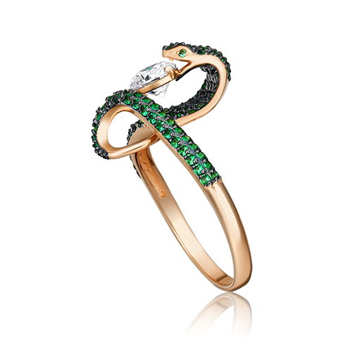 Кольцо, красное золото, цветные фианиты