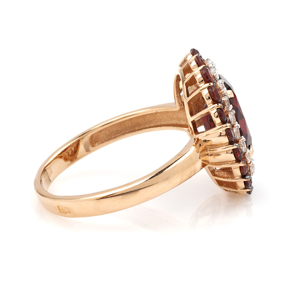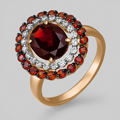 - Вставка: Гранат (природный) 1шт. (огранка - овал), Гранат (природный) 1шт. (огранка - круг), Фианит (природный) 1шт.