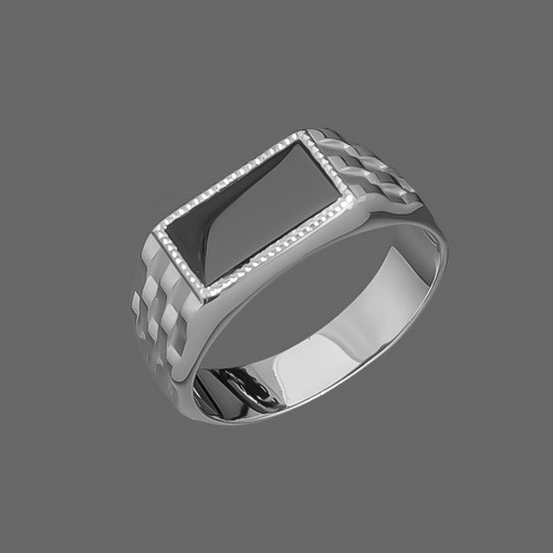 Серебряная родированая печатка с прямоугольной чёрной вставкой