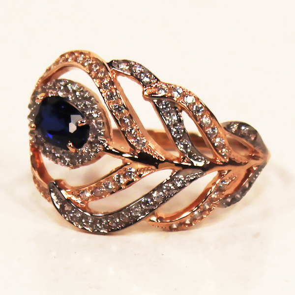 - Вставка: Корунд (сапфир) (огранка - овал), Фианит