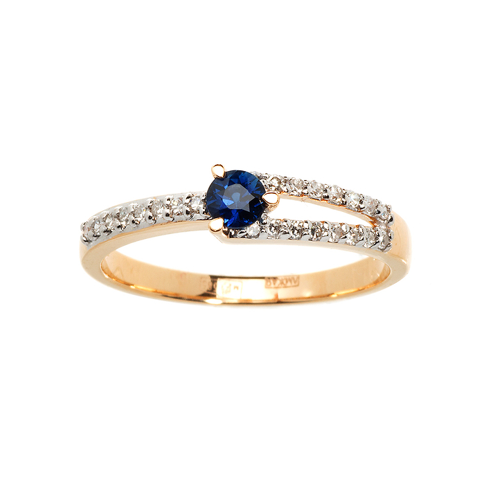 Золотое кольцо с круглым синим сапфиром и бриллиантами