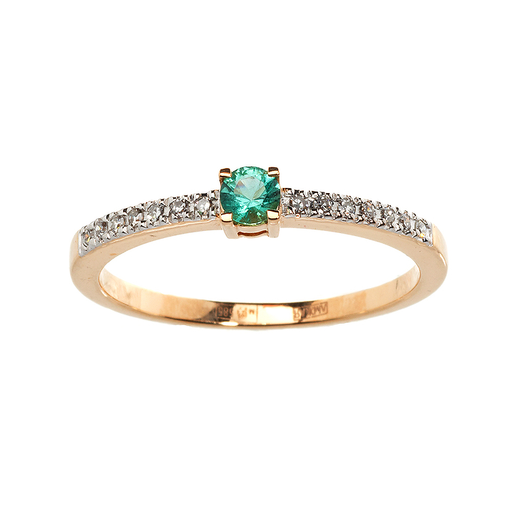 Золотое кольцо с маленьким светло-зеленым изумрудом и бриллиантами