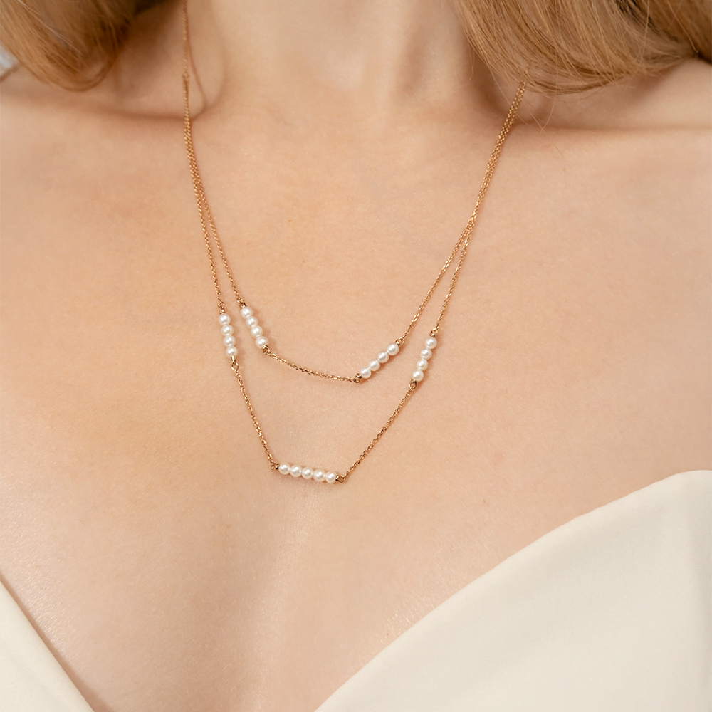 Колье, красное золото, жемчуг культивированный