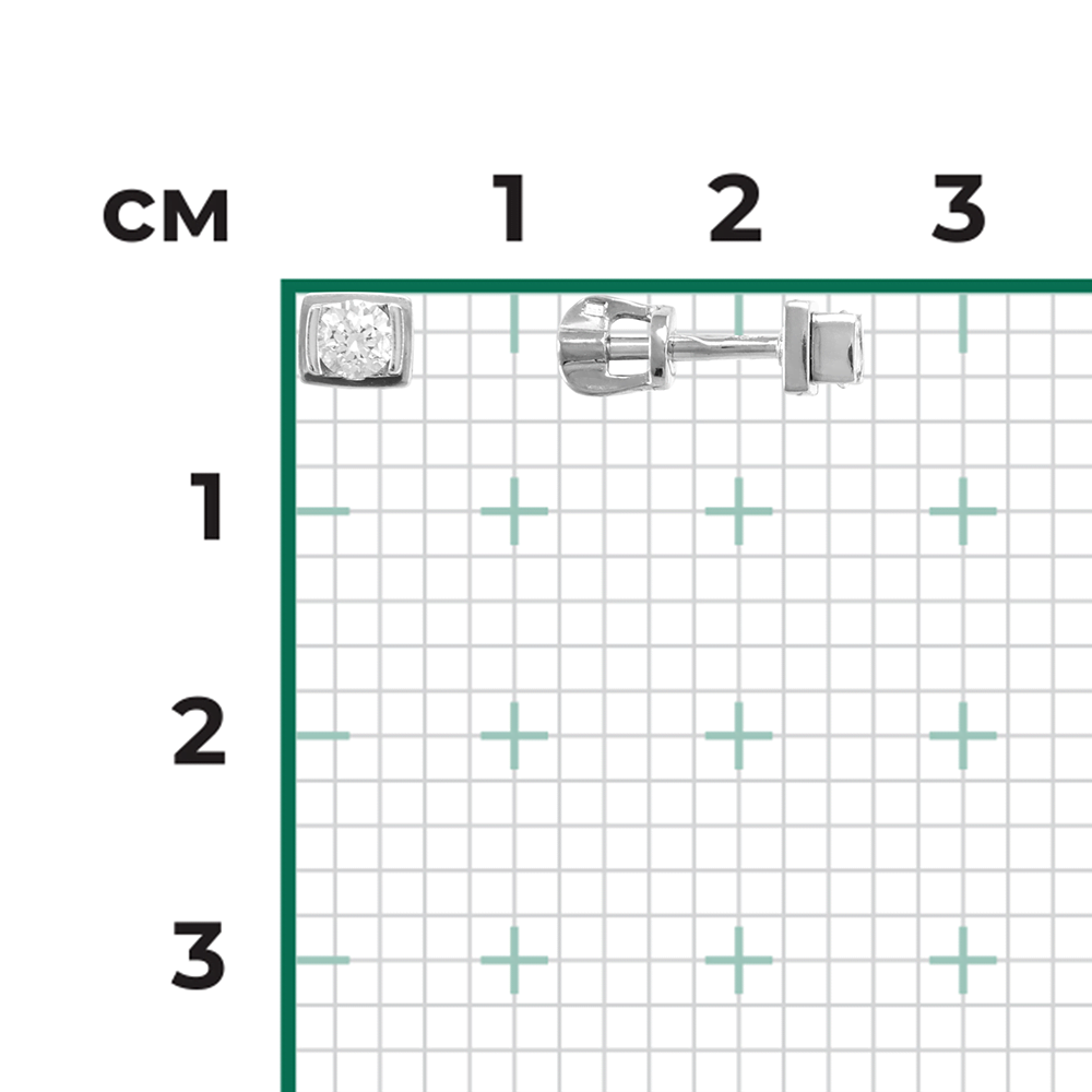Серьги, белое золото, б/ц фианиты
