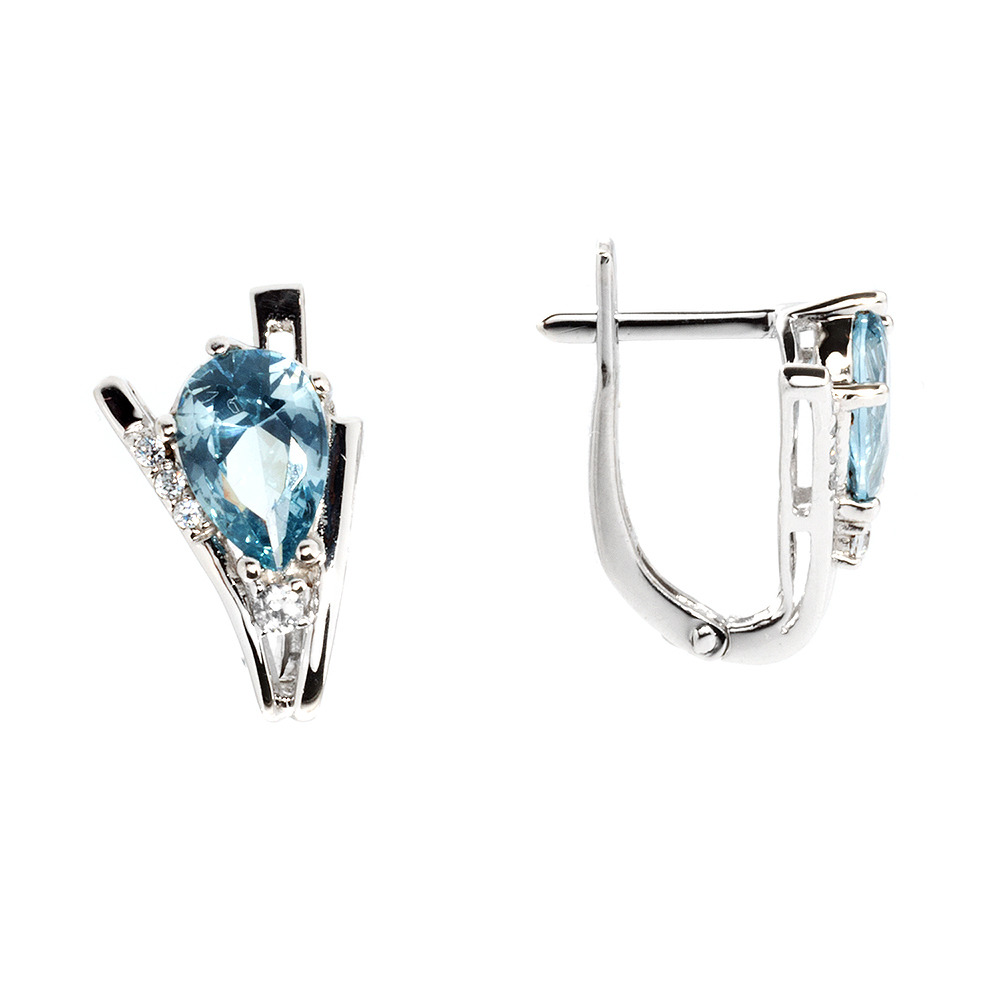 Серьги из белого золота с голубыми вставками груша