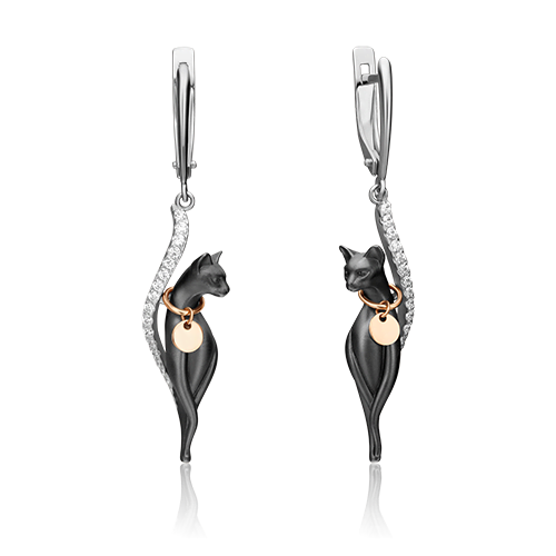 Серьги, красное и белое золото, б/ц фианиты