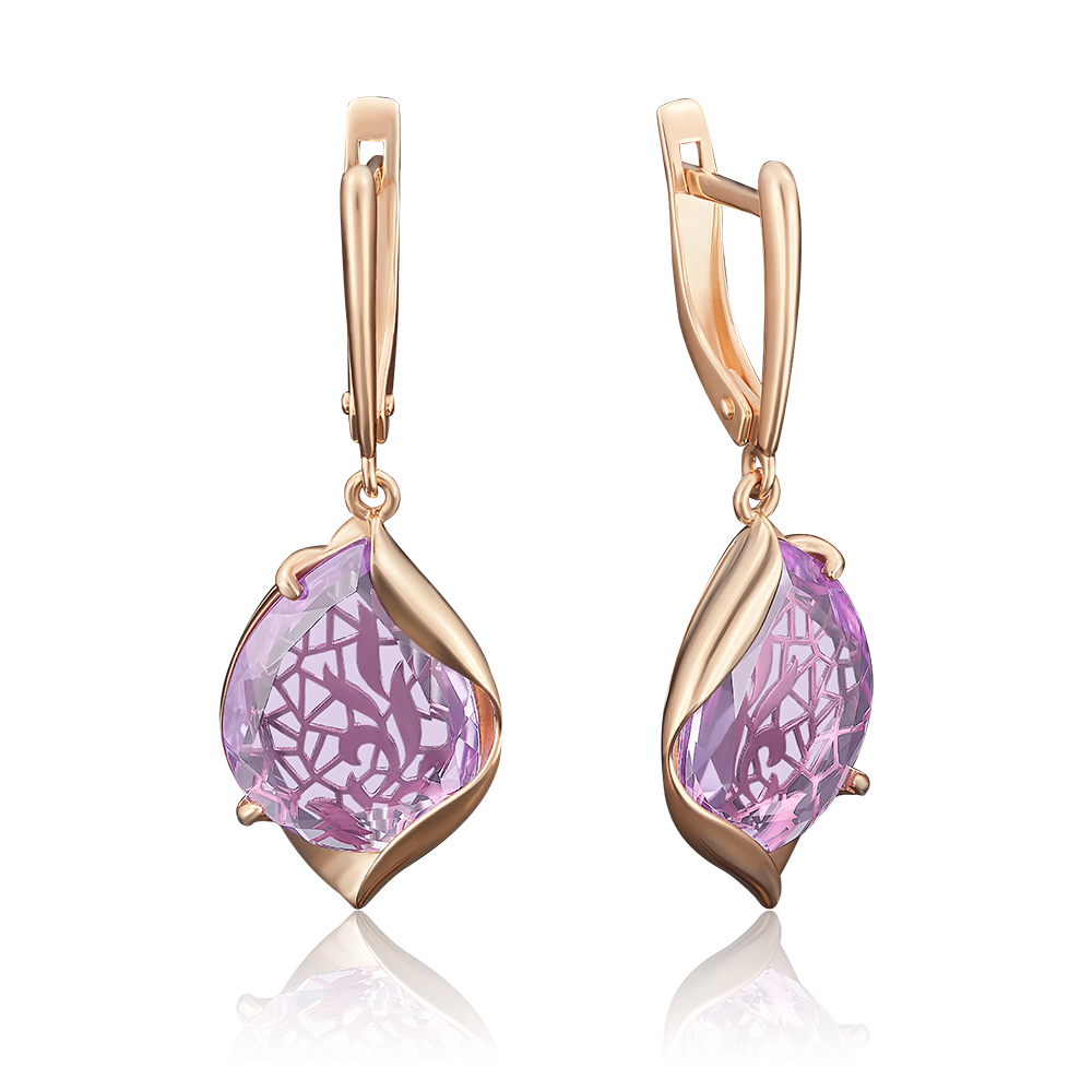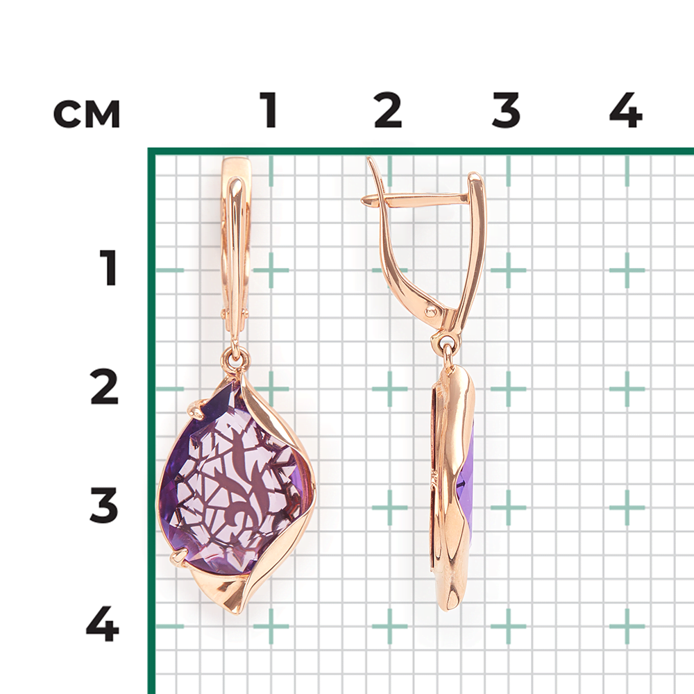 Серьги, красное золото, аметист