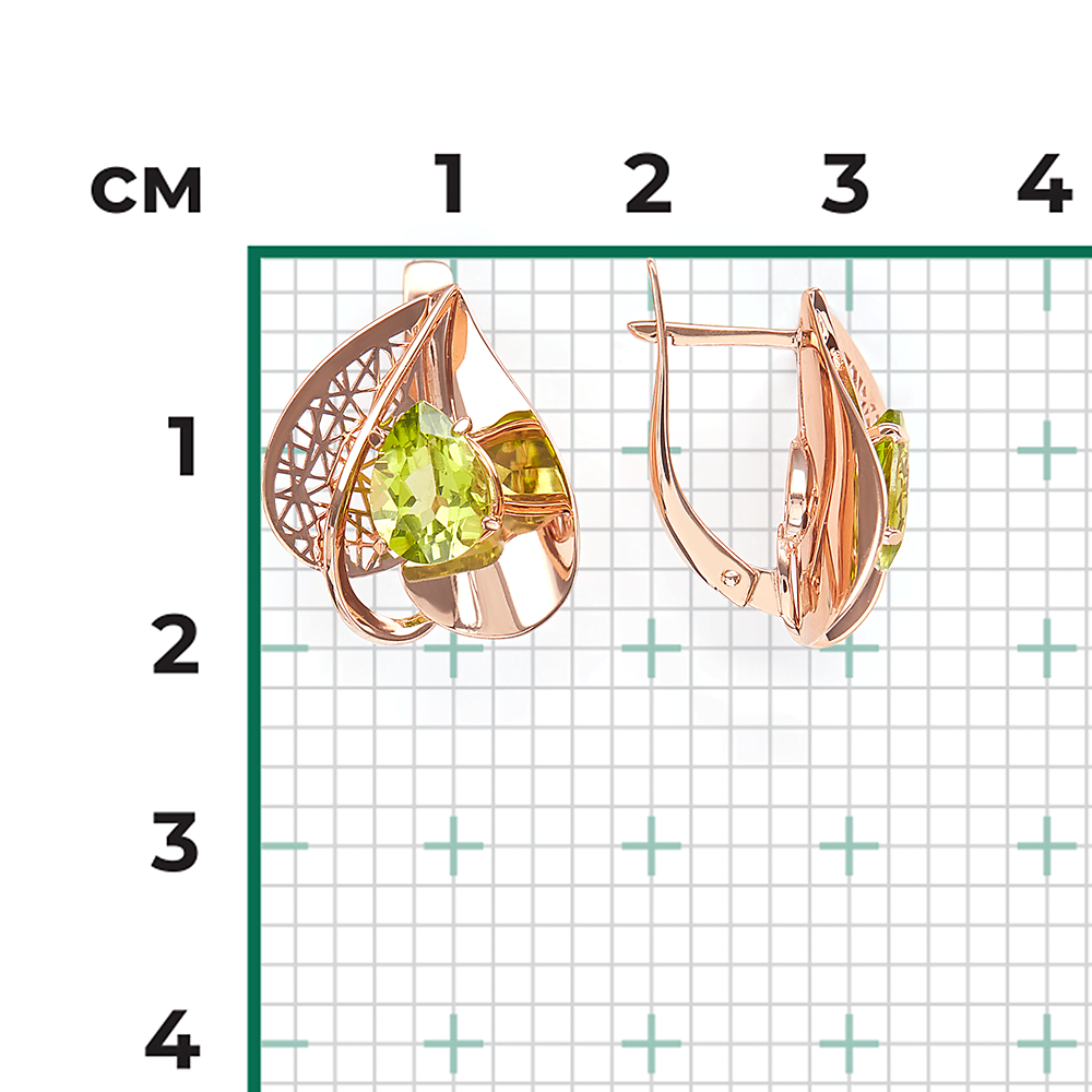 Серьги, красное золото, хризолит